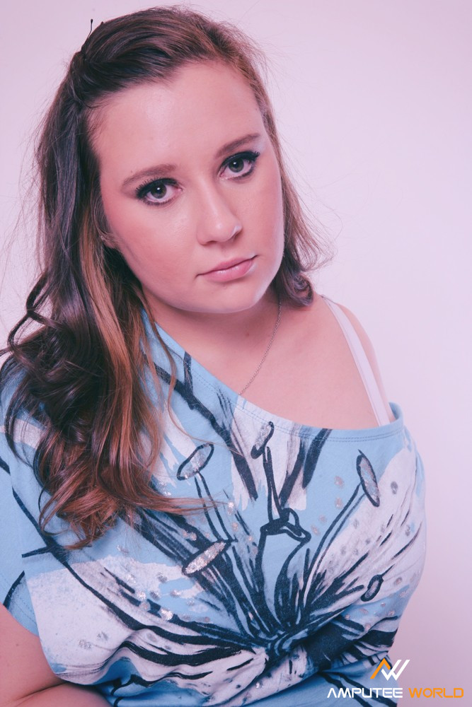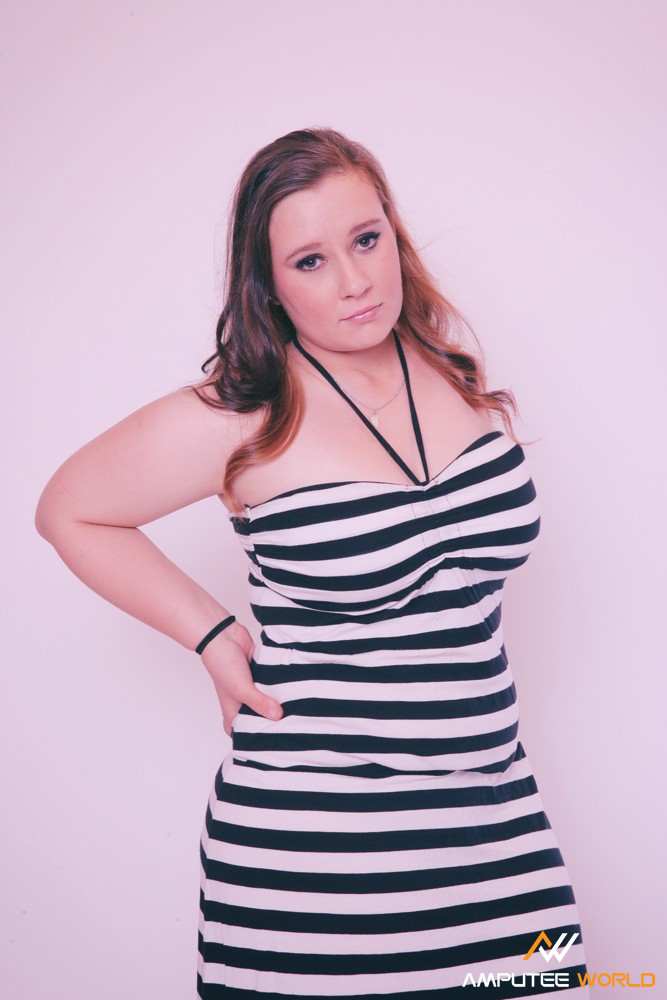 Moni was born with a deformed left leg and without her left arm. Her leg had to be amputated at a very early age. Moni feels completely normal and is quite open about her handicap. Some things take her a bit longer to do than people with two arms, but she has lots of patience. In her photo-shooting she wants to show us that it is possible to lead a perfectly normal life and that you should not let anything stand in your way.